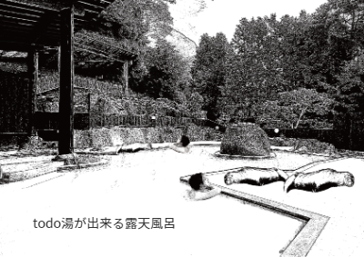 todo 湯のおすすめ! todo湯とは.... 湯に入って "極楽、極楽" 温まったらトドのように 湯の淵で"グターッ" と横になり また湯に入って "極楽、極楽" また空を見ながら "グターッ" と横になる入浴法 束ノ間 home